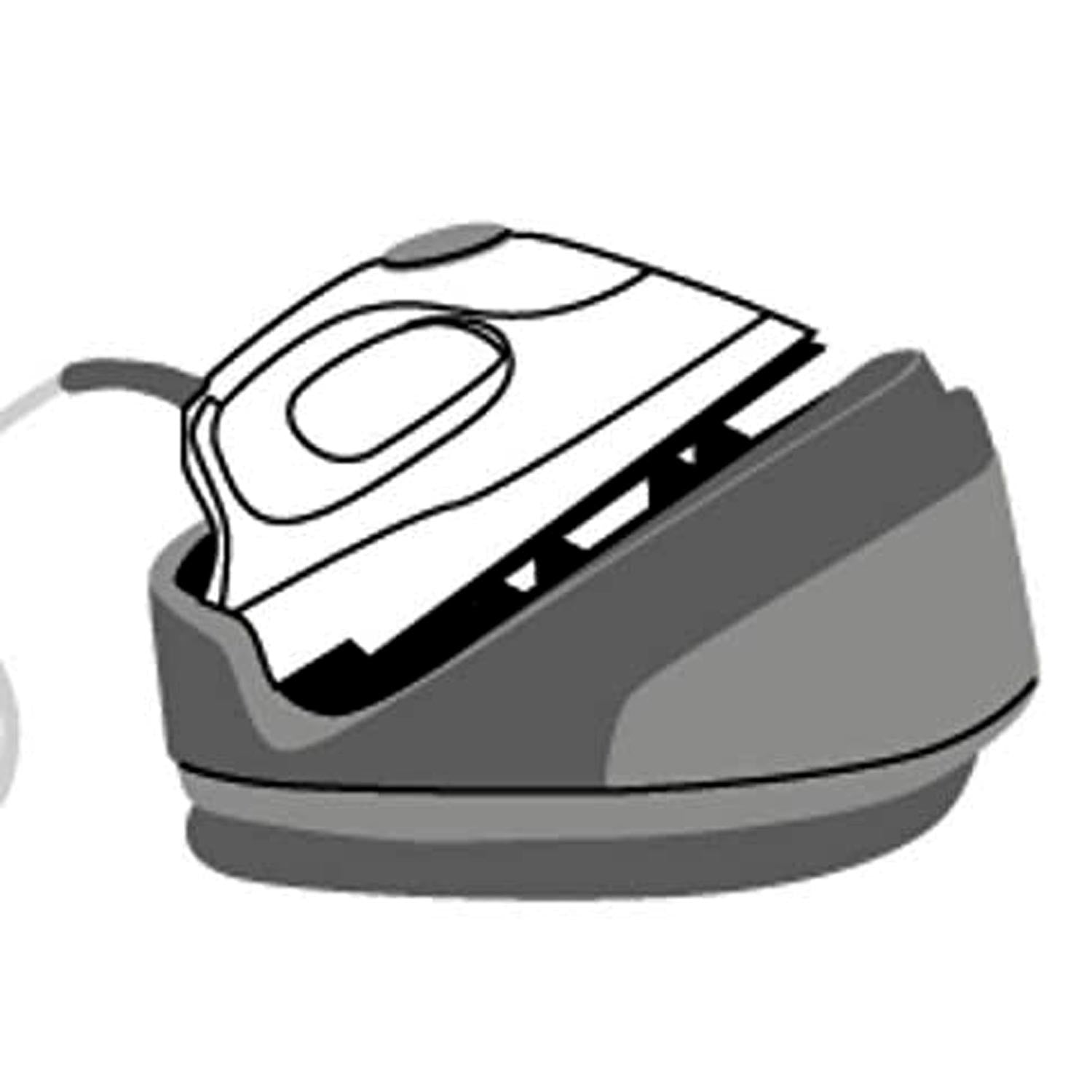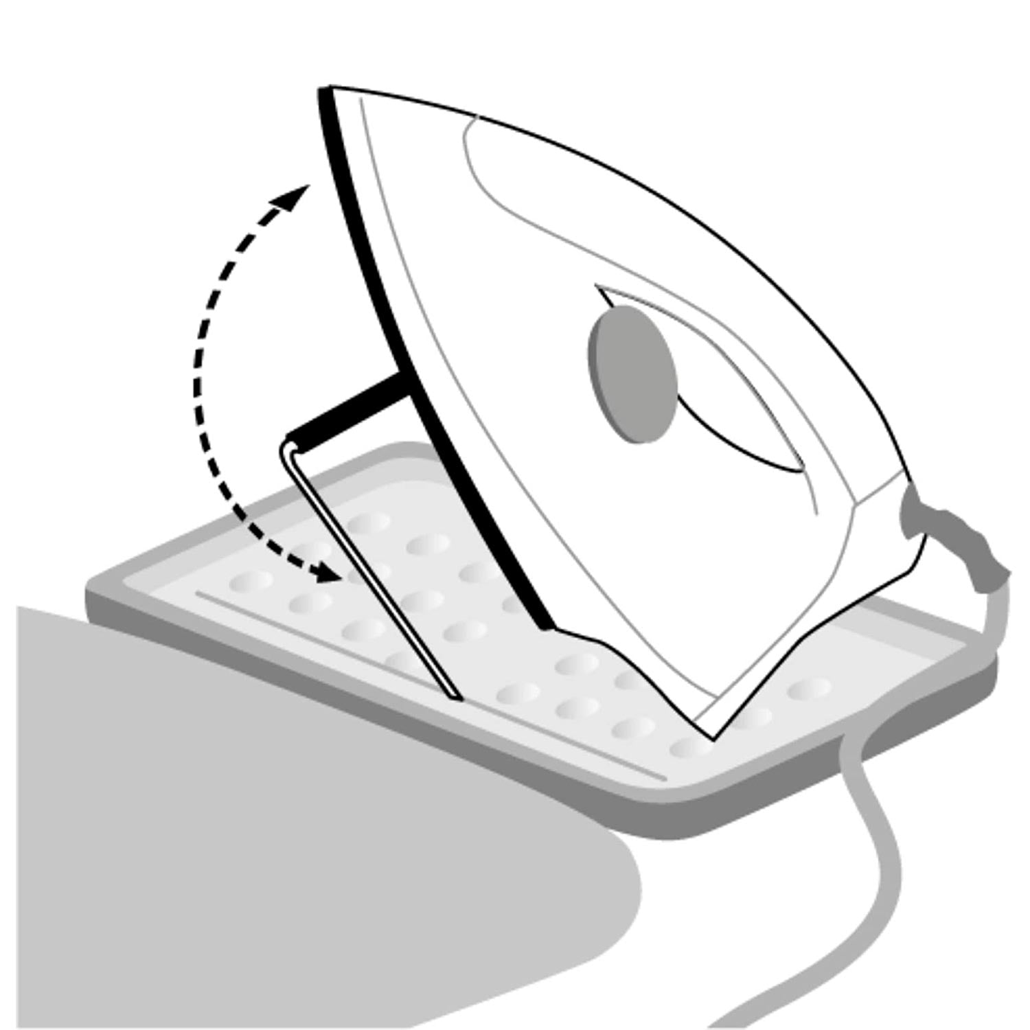 - На сталевій підставці є вішалка для тремпелів та тримач для кабелю праски.