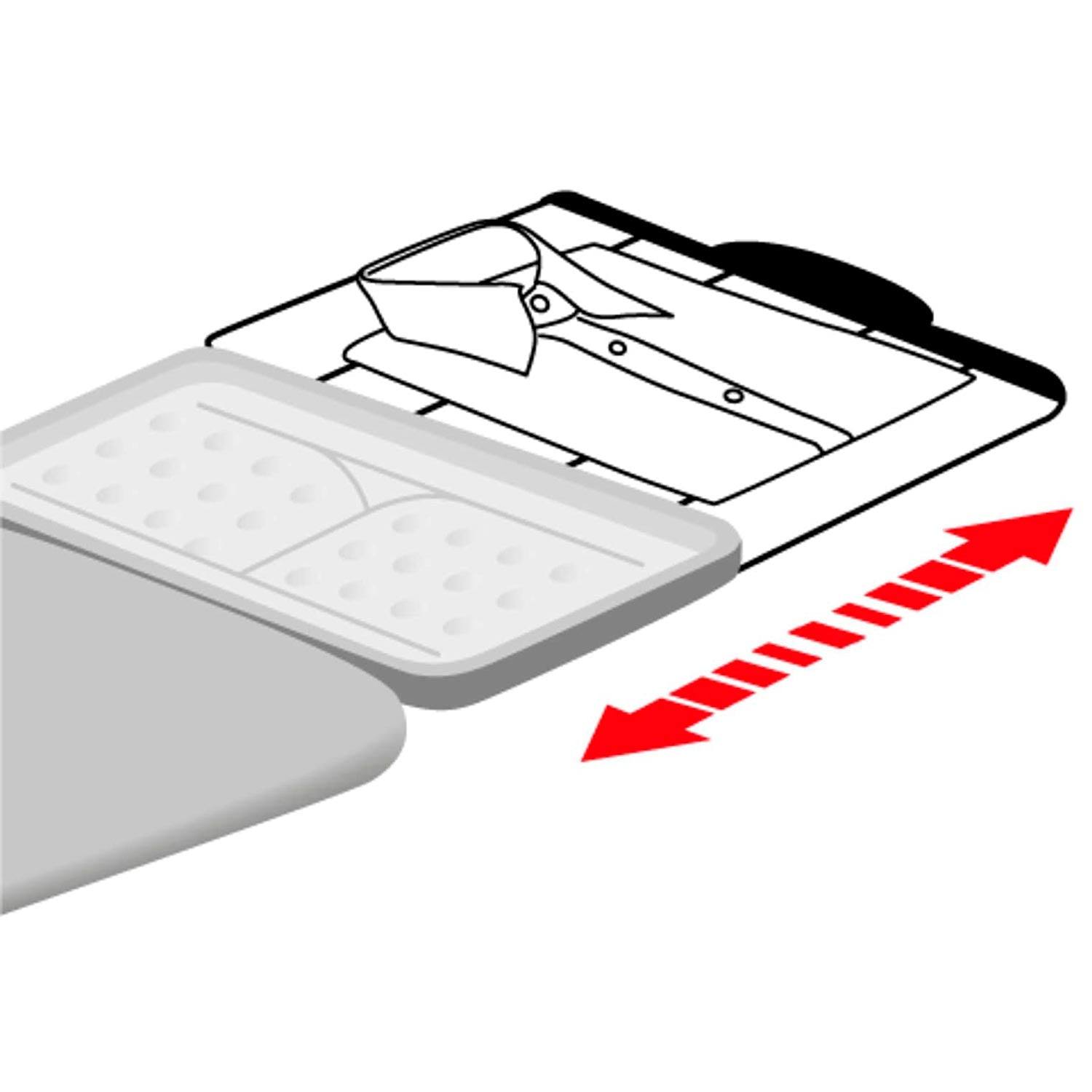 Прасувальна поверхня дошки має наскрізну перфорацію на кшталт сітки. Завдяки такій конструкції, пара з-під праски проходить крізь саму дошку, тим самим запобігає накопиченню конденсату під чохлом. Закруглене закінчення дошки дозволяє вигладити важкодоступні місця в сорочках або блузах. Чохол знімний, у міру використання його завжди можна випрати або замінити на новий. Прасувальна дошка плавно і без особливих зусиль регулюється по висоті для максимально комфортного використання. На ніжки одягнені ковпачки, що оберігають дошку від ковзання.