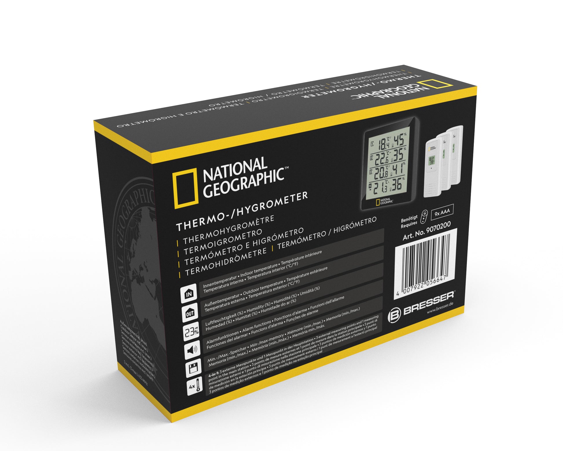Термометр-гигрометр National Geographic 4 Measurement Results Black (9070200) отображает время, день недели, показатели температуры, влажности воздуха внутри и снаружи помещения, уровнь комфорта в виде пиктограммы. Модель позволяет програмировать звуковые сигналы по температуре и влажности, при выходе за которые прибор сигнализирует пользователя звуковым сигналом. Современный лаконичный дизайн и широчайший спектр функций позволит с равным успехом использовать термометр-гигрометр как в квартире, офисе так и в частном доме.