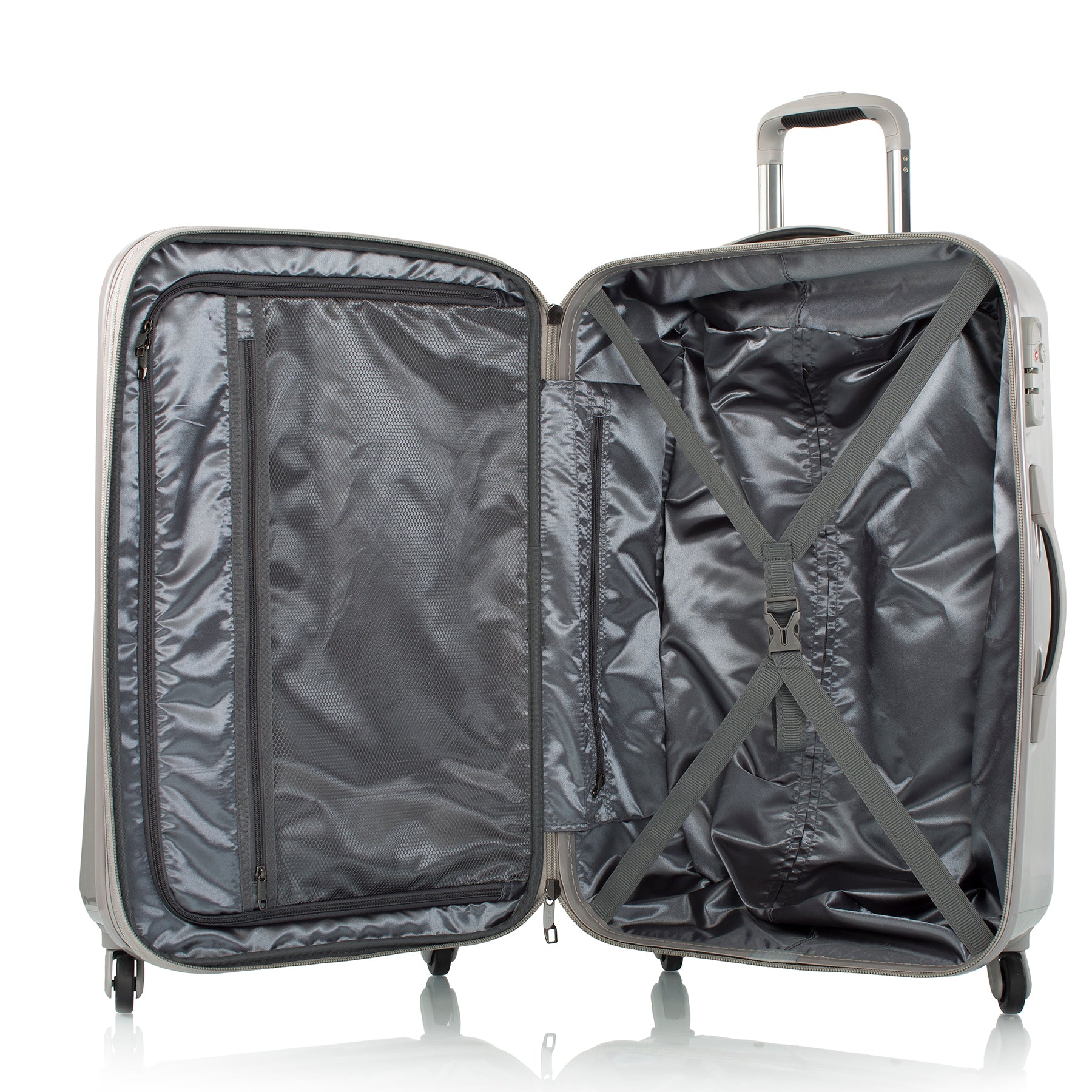 - Компресійний ремінь із пряжкою для фіксації багажу всередині валізи.