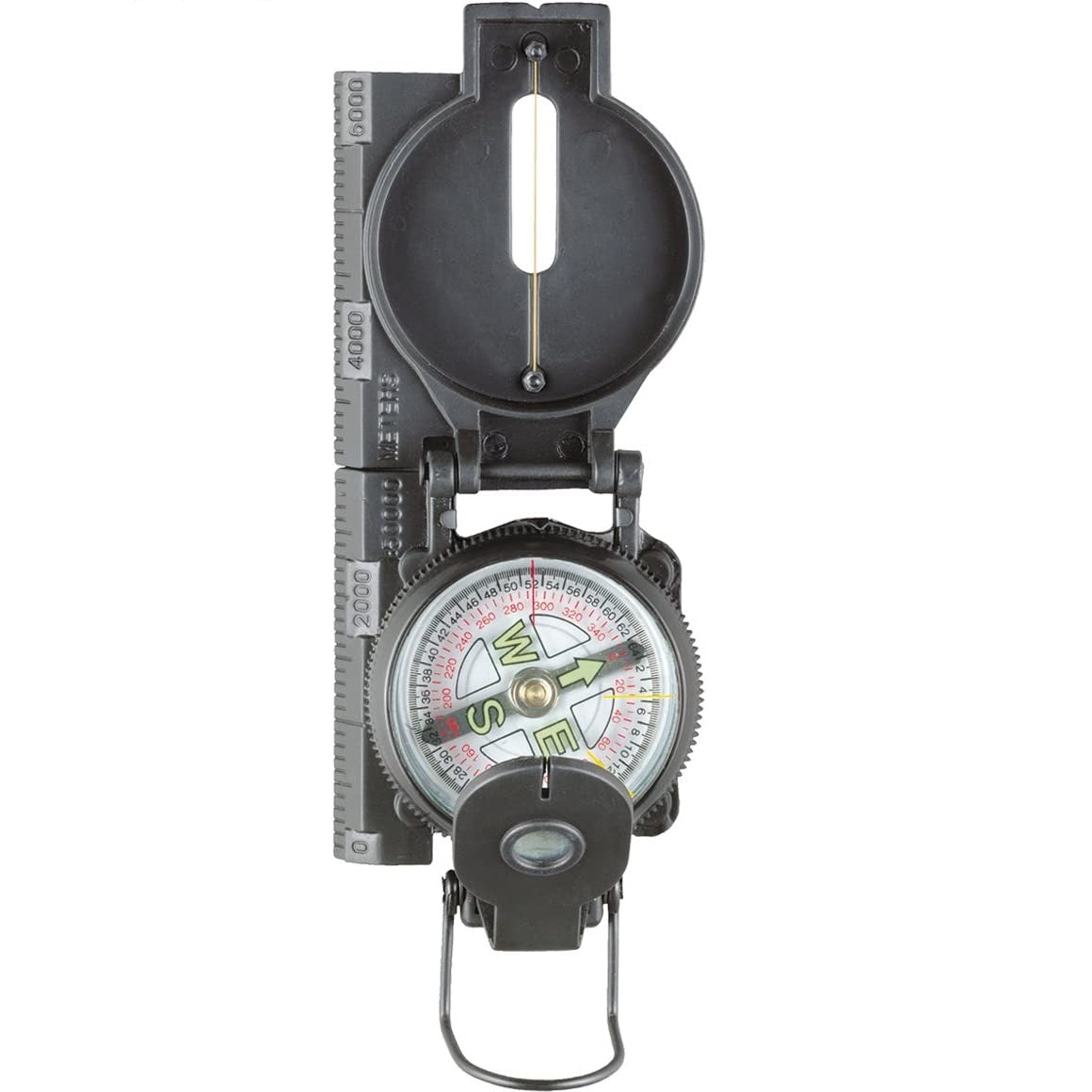 - Міцний металевий футляр складається й закріплюється навколо компаса, роблячи його стійким до пошкоджень і достатньо малим, щоб тримати в кишені.