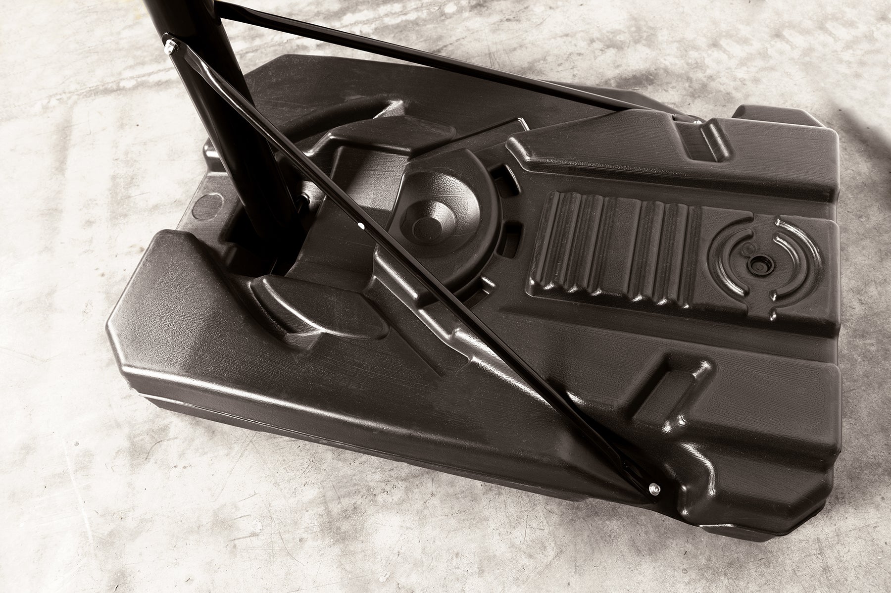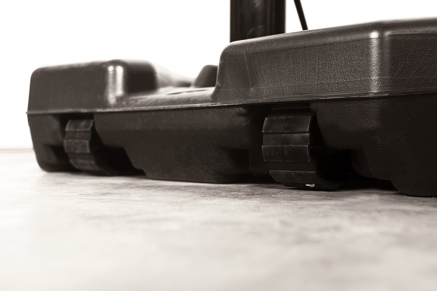 - Основа з чорного формованого поліетилену, оснащена колесами спереду, її можна наповнити водою для забезпечення стійкості під час гри.