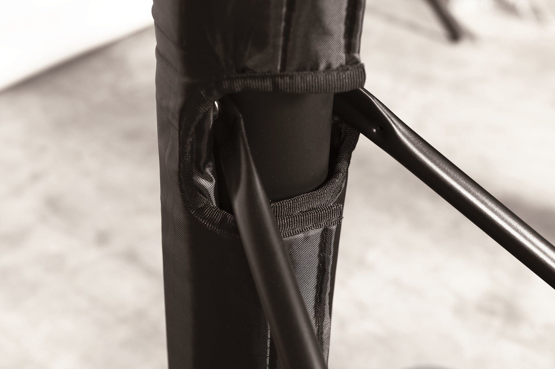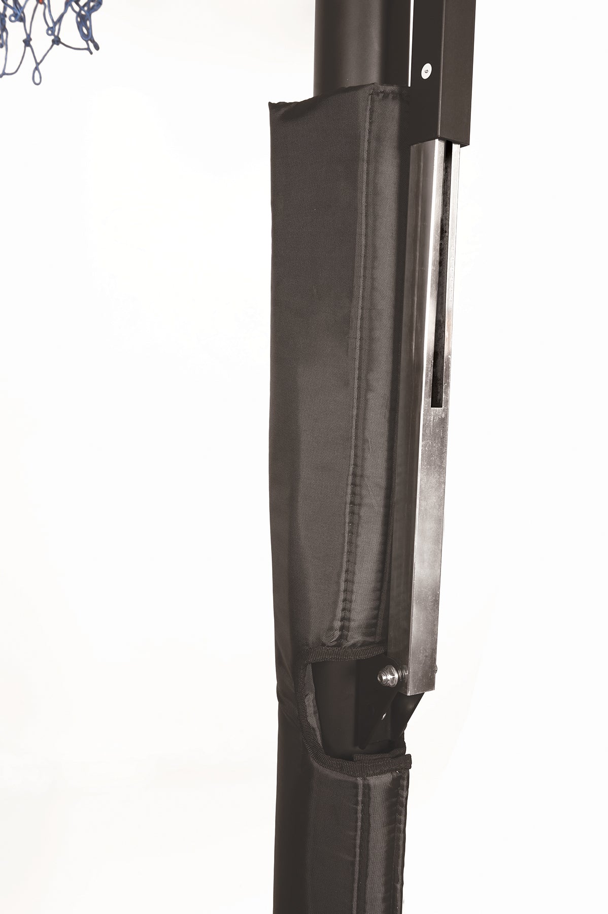 - Вертикальна конструкція з регульованою висотою, зі сталевої телескопічної труби Ø60 мм і армуючих кріплень, покрита порошковою фарбою чорного кольору.