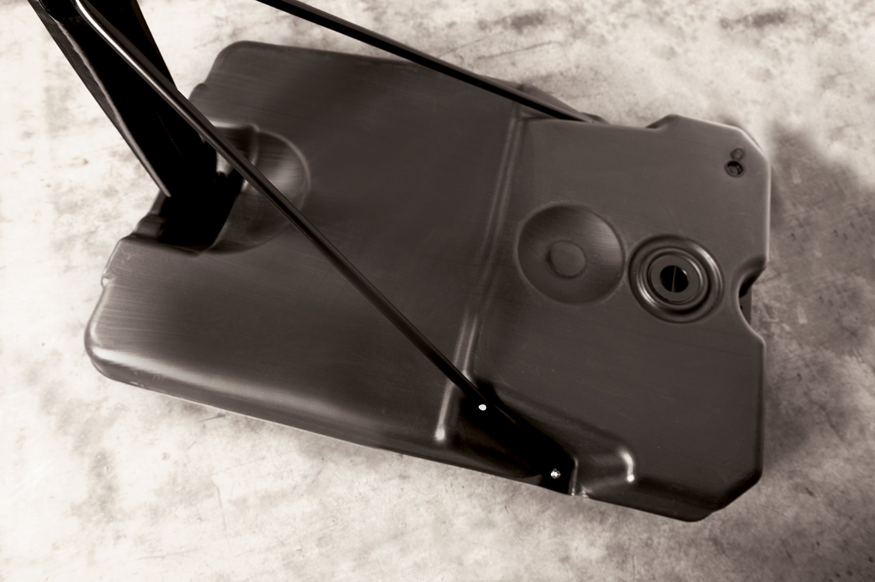 - Основа з чорного формованого поліетилену, оснащена колесами спереду, її можна наповнити водою для забезпечення стійкості під час гри.