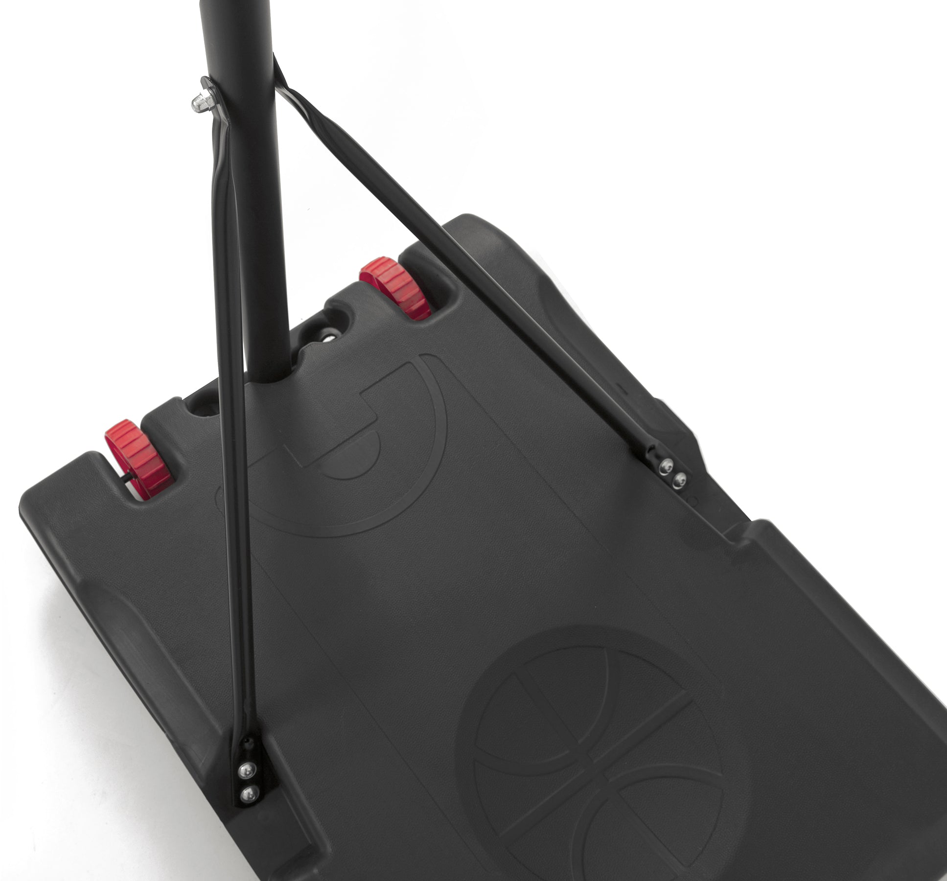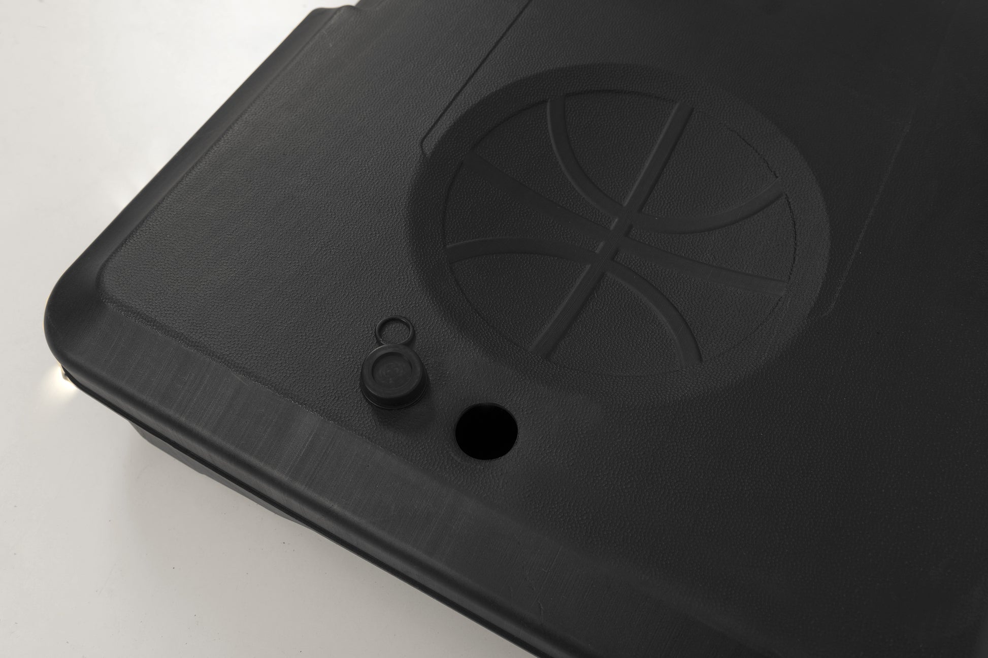 - Основа з чорного формованого поліетилену, оснащена колесами спереду, її можна наповнити водою або піском для забезпечення стійкості під час гри.