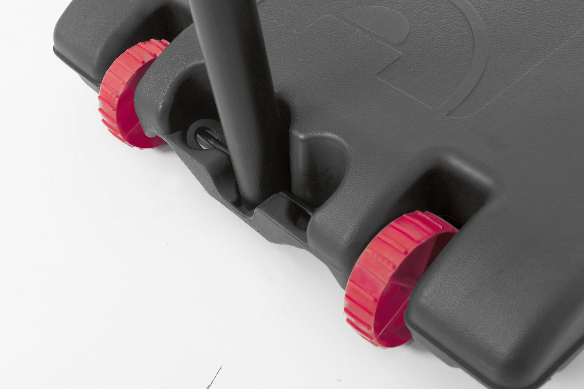 - Легко транспортується завдяки двом колесам, вставленим у основу.
