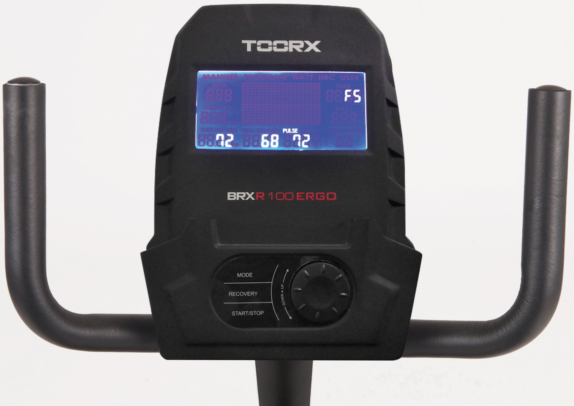 Горизонтальний велоергометр Toorx Recumbent Bike BRXR 100 ERGO (BRX-R100ERGO) із преміальної лінійки Chrono Line від італійського виробника Garlando S.p.A. призначений для комфортного кардіотренування в домашніх умовах. Тренажер має 32 рівня навантаження, що регулюються за допомогою сучасного комп'ютера. 14-кілограмовий маховик створює чудову плавність ходу, знижуючи навантаження на суглоби та мінімізуючи ризик отримання травми в процесі занять. Велоергометр розрахований на вагу користувача до 130 кг і має зручну спинку з дихаючої сітки для більшого комфорту. Вбудований приймач для бездротового датчика вимірювання пульсу буде доречним під час тренування по одній із чотирьох пульсозалежних програм. Консоль тренажера має підставку для смартфона/планшета та підтримує Bluetooth для інтеграції з популярними програмами iConsole+ Training і Kinomap, які перетворять монотонне тренування в захоплюючий процес. Сидіння велоергометра регулюється в горизонтальній площині для індивідуального настроювання, а транспортувальні ролики в передній частині тренажера дозволяють переміщати його по кімнаті.