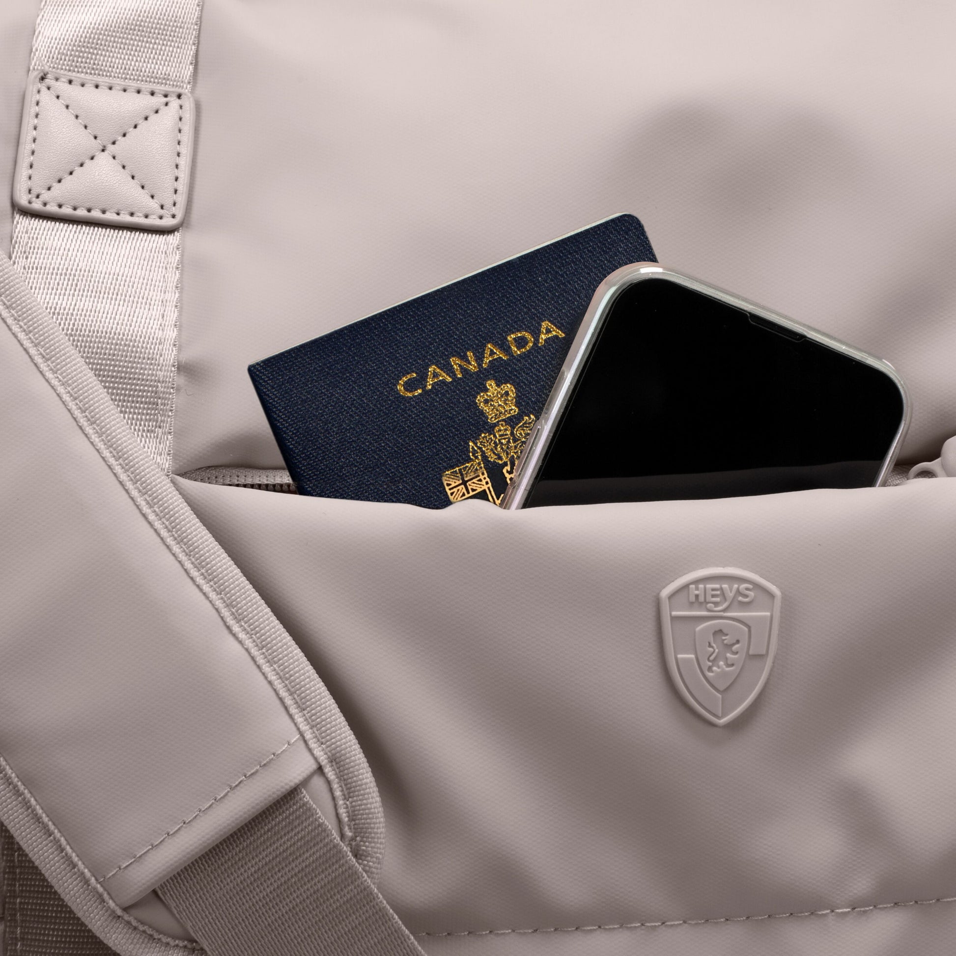 Надзвичайно жіночна та містка, вона створена для дівчат, які хочуть виглядати стильно та сучасно, як в повсякденному житті, так і під час подорожі, а також мати під рукою все необхідне. Ця сумка є зручною завдяки просторому внутрішньому відділенню, окремому зовнішньому відділенню для взуття на блискавці, кишені для пляшки з водою, прихованій передній кишені на блискавці та внутрішній кишені. Передбачено спеціальне кріплення – широкий пасок, за допомогою якого сумка міцно закріпиться на ручці валізи. В поїзді чи літаку вона знову буде з вами, оскільки вам не доведеться здавати її до багажного відділення.