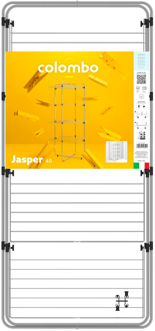Сушарка для білизни підлогова Colombo Jasper 40 (ST193/4) - це чудовий компроміс між необхідністю сушіння великої кількості одягу та економією простору. Конструкція постачається в зібраному стані вам потрібно закріпити тільки пластикові накладки. Модульна система забезпечує можливість розміщення сушарки в душовій кабіні або біля стіни, склавши одну сторону. Сушіння довгих речей не є проблемою для Colombo Jasper 40, закріпіть речі за верхню секцію та складіть нижні, які перешкоджають вільному звисанню. Загальна робоча довжина поверхні тридцять метрів, розрахована на максимальне навантаження до дев'яти кілограмів.