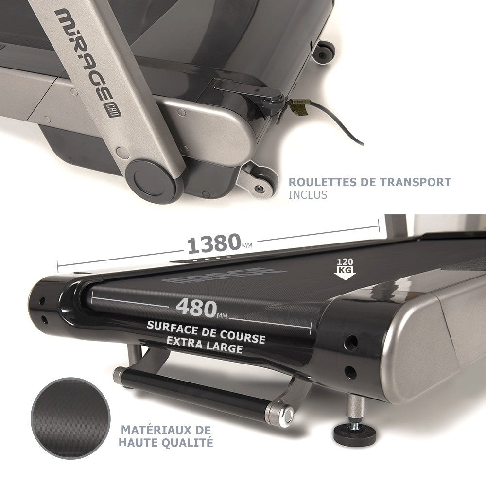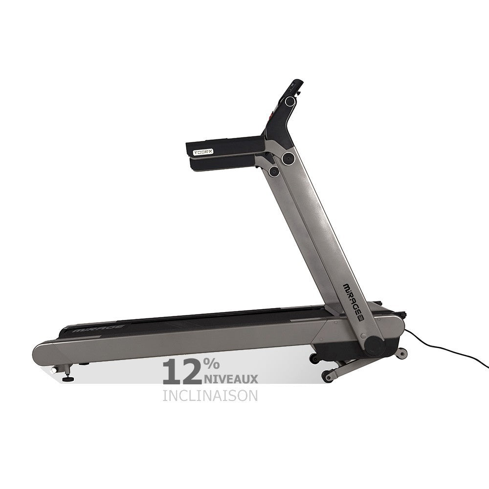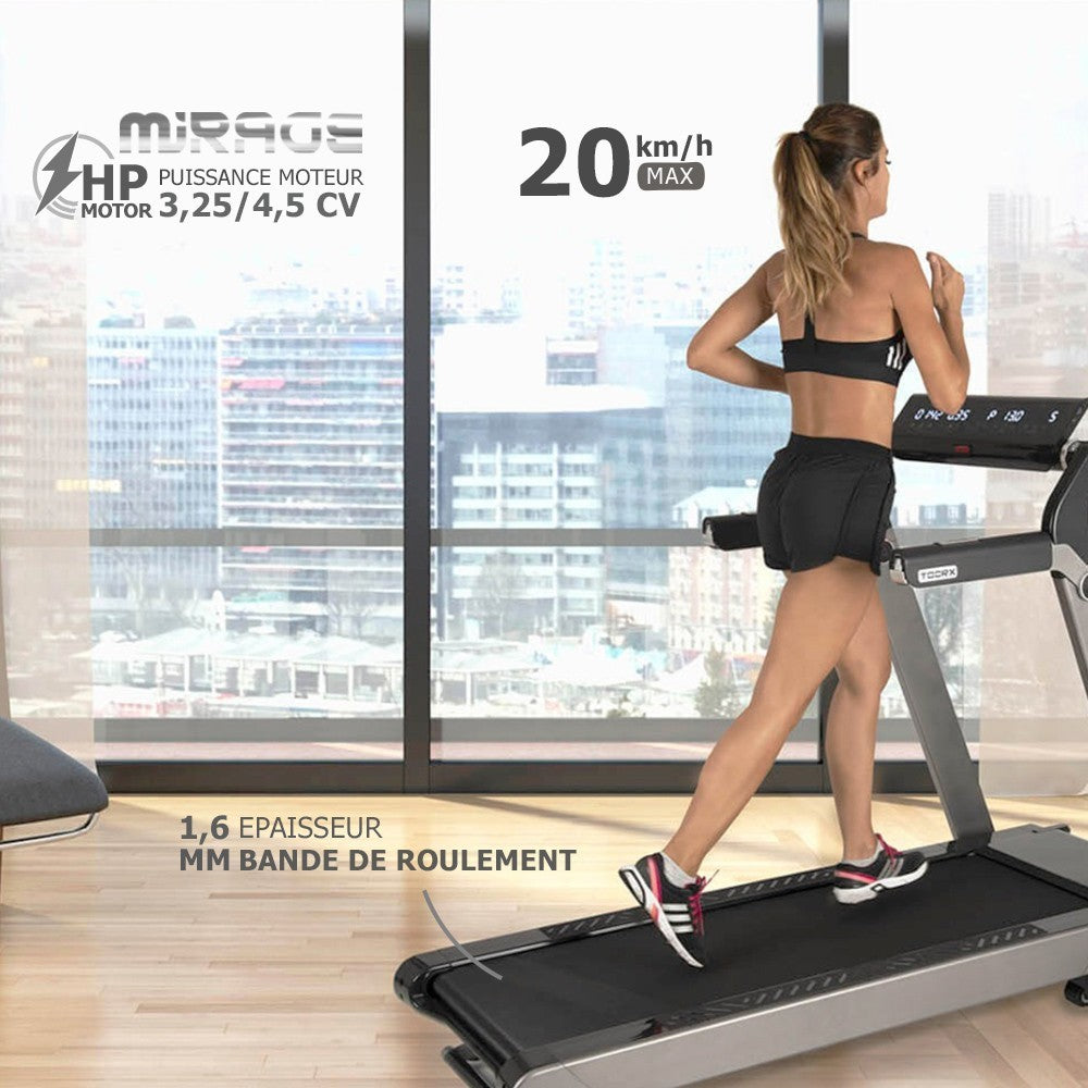 Бігова доріжка Toorx MIRAGE-C80 (MIRAGE-C80) - поєднує в собі потужність, функціональність та зручність для домашнього використання. Ця модель забезпечує високий рівень комфорту тренувань завдяки передовим технологіям амортизації, розширеному вибору програм та мультимедійним можливостям. Бігова доріжка оснащена інтуїтивною консоллю з LED-дисплеєм, що дозволяє легко контролювати основні показники вашого тренування. Однією з ключових переваг є наявність бездротового нагрудного кардіопередатчика, який входить до комплекту, забезпечуючи точний моніторинг пульсу. Надійна конструкція дозволяє витримувати вагу користувача до 120 кг, а складана система з транспортувальними роликами спрощує зберігання. Ця бігова доріжка стане вашим надійним партнером у досягненні фітнес-цілей, незалежно від вашого рівня підготовки.