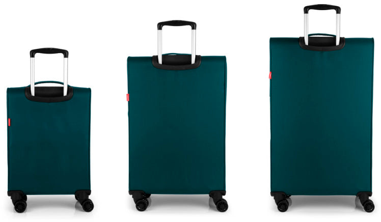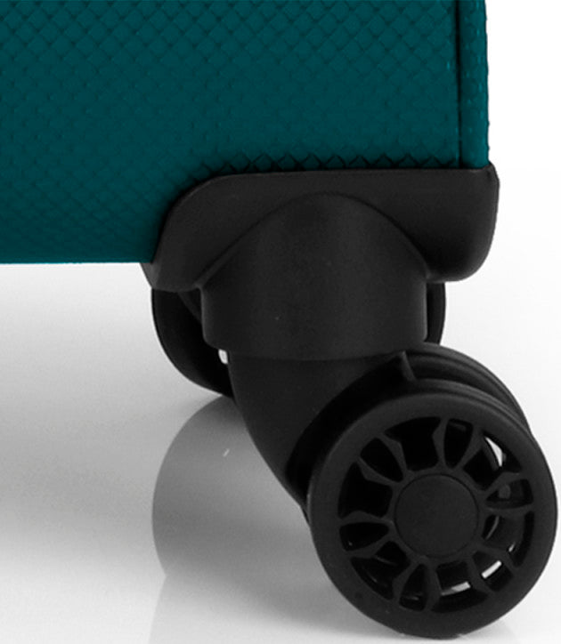 Валіза має чотири колеса з можливістю розвороту на 360°. Конструкція забезпечує рівномірний перерозподіл навантаження на кожне колесо, що сприяє плавному руху та маневреності валізи. Колеса виготовлені з термопластичного поліуретану (TPU). Цей матеріал має міцність порівнянну з пластиком, гнучкістю силікону, а також підвищену стійкість до перепадів температури та стирання. Завдяки цьому колеса мають тривалий термін експлуатації. Відмінною особливістю коліс із TPU-матеріалу є зниження шуму до мінімуму під час руху валізи нерівною поверхнею.