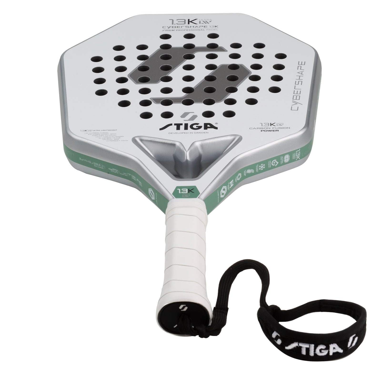 Ракетка для падел тенісу STIGA 1.3K Ultra LW Cybershape - це інноваційна модель 2025 року, розроблена для гравців середнього рівня, які прагнуть покращити свою техніку та контроль над м’ячем. Завдяки унікальній шестикутній формі Cybershape, ця ракетка забезпечує на 20% більшу зону оптимального удару (sweet spot) у верхній частині голови та на 12% менший опір повітрю порівняно з традиційними круглими моделями. Зовнішній шар ракетки складається з 1.3K Carbon Fusion, тонкого шару карбонового волокна, яке разом зі скловолокном утворює чудову комбінацію для тих хто хоче досягти відмінного контролю м'яча та відчуттів при ударах. Рама виготовлена зі скловолокна, щоб уникнути сильних вібрацій і щоб ви отримали плавний удар по м'ячу. Подовжена ручка забезпечує додатковий комфорт та підтримку, а також багато місця для ударів ліворуч двома руками. Чудова поверхня зчеплення Crystal Grip дозволяє по-справжньому відчути відвертання м'яча.