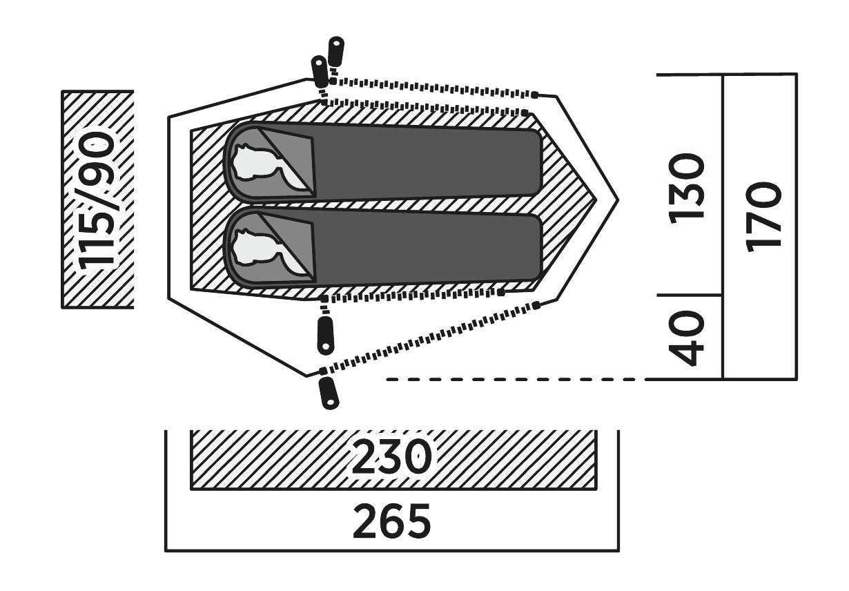 Особлива конструкція з боковим входом і портьєрою для зберігання спорядження дозволяє зручно організувати внутрішній простір. Додатковий задній вхід спрощує доступ до внутрішнього намету, а передня та задня вентиляція підтримують свіжий і комфортний мікроклімат усередині.