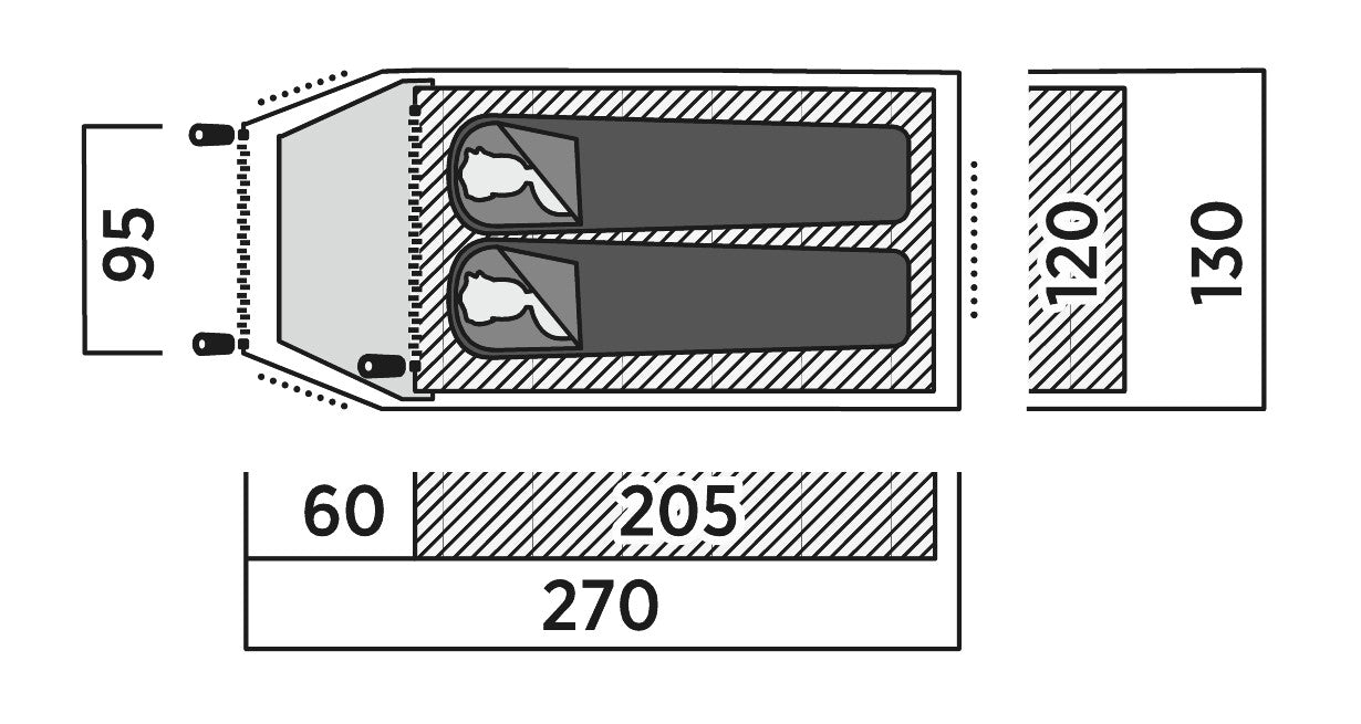 Розміри намету становить: 270 х 110 х 130 см