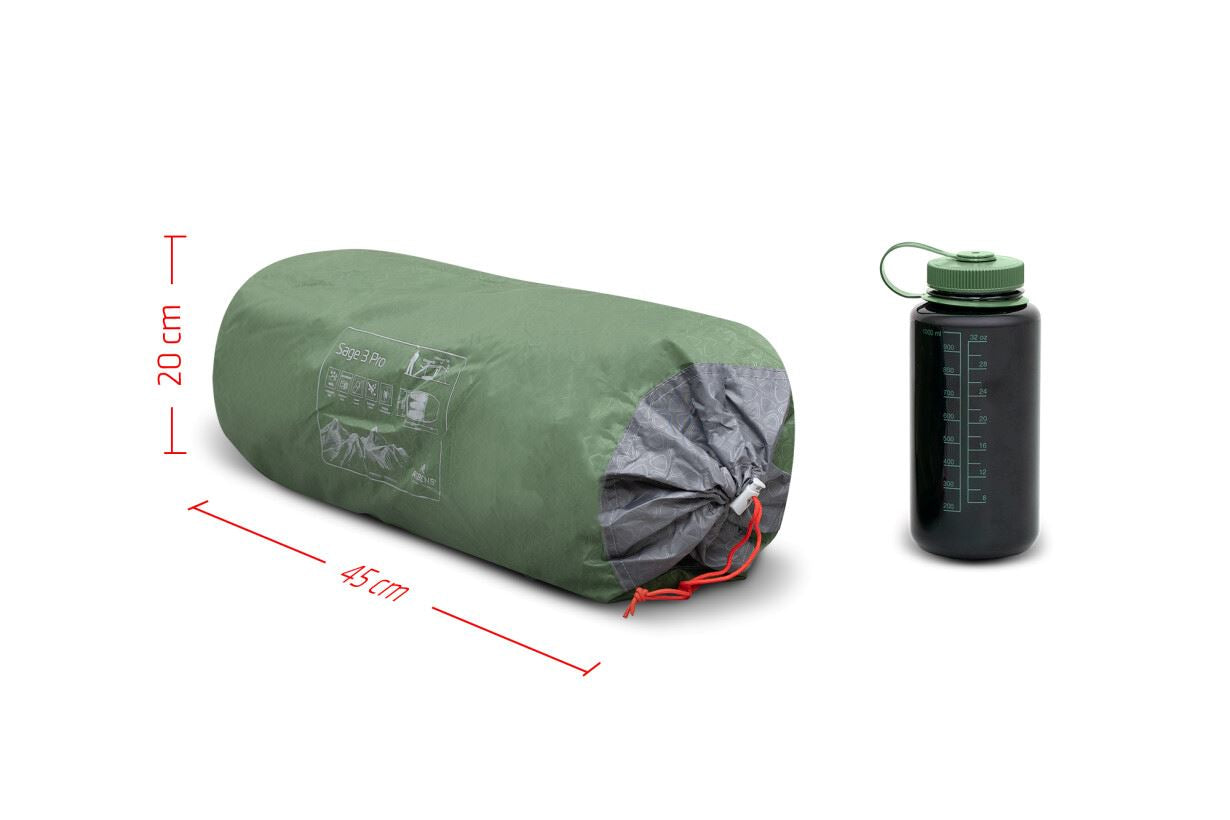 Тунельний намет Robens Sage 3 Pro має комфортний житловий простір для трьох осіб, є стійким і простим у встановленні. Він має одні бічні двері, що ведуть на простору веранду з достатнім місцем для зберігання речей та простором над головою, щоб сидіти та відпочивати в негоду. Вага все ще достатньо низька, тому двоє людей можуть розглянути його як просторий варіант, якщо очікується нестабільна погода. Передні та задні вентиляційні отвори створюють потік повітря для мінімізації конденсації.