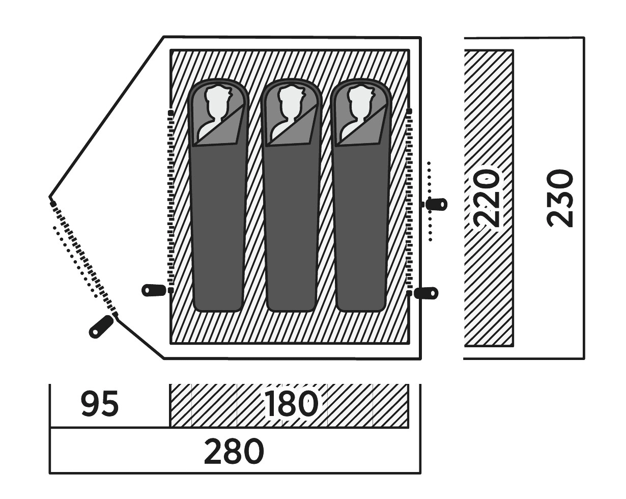 - Розміри намету становить: 280 × 120 × 230 см