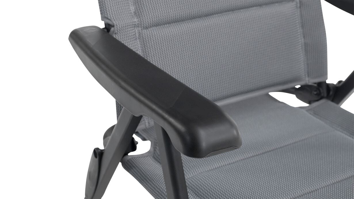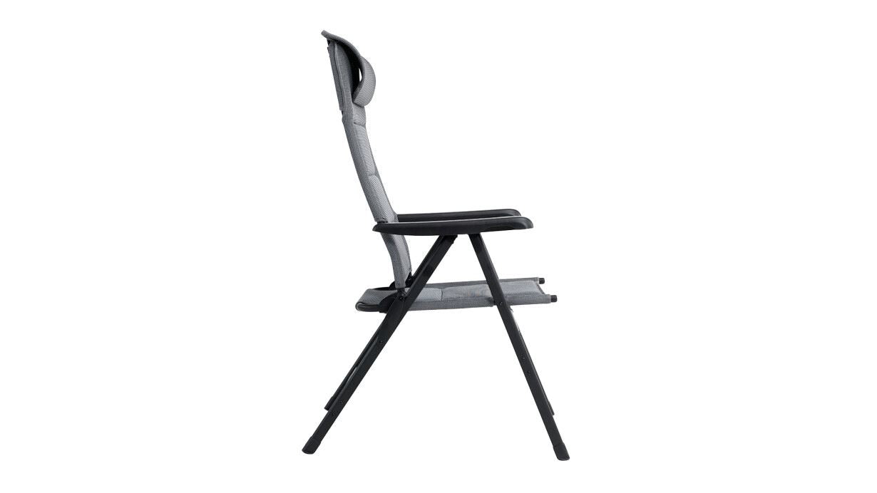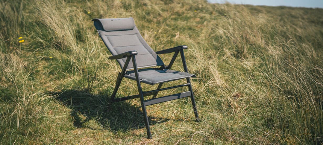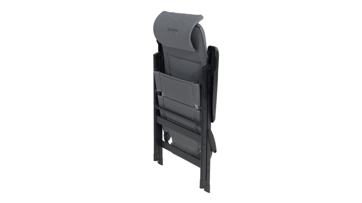 Стілець кемпінговий Outwell Teton поєднує швидковисихаючу підкладку з сітчастою тканиною Textiline стильного чорного кольору. Крісло має регульований, знімний підголівник і водовідштовхувальний матеріал під тканиною, щоб запобігти вбиранню води в пінопластову підкладку, якщо її залишити під дощем.