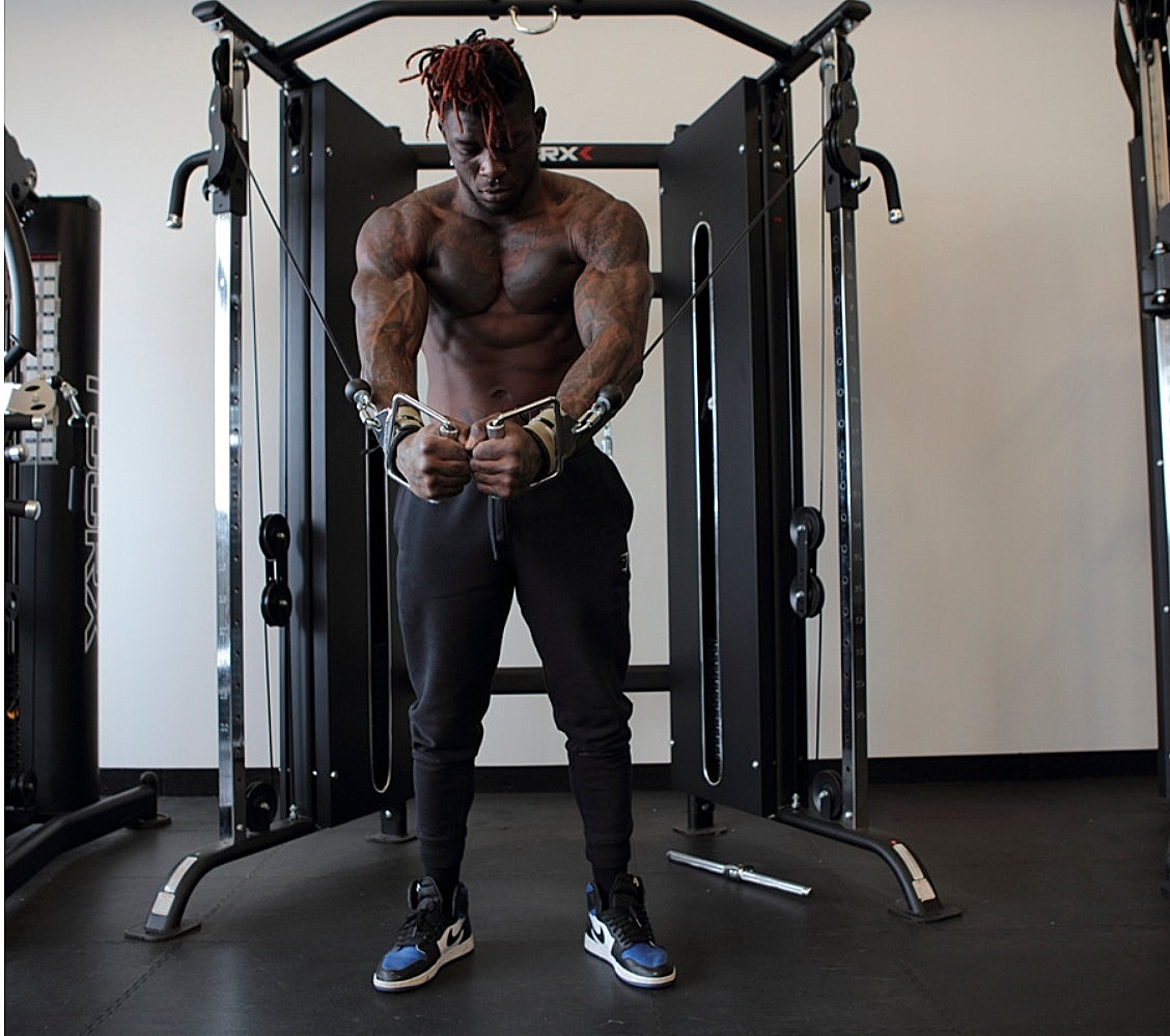 Аксесуари в комплекті: Прямий великий гриф, пара блок-рукояток, прямий трицепсовий гриф, вигнутий гриф, V-гриф для трицепсу, подвійна трос-рукоятка