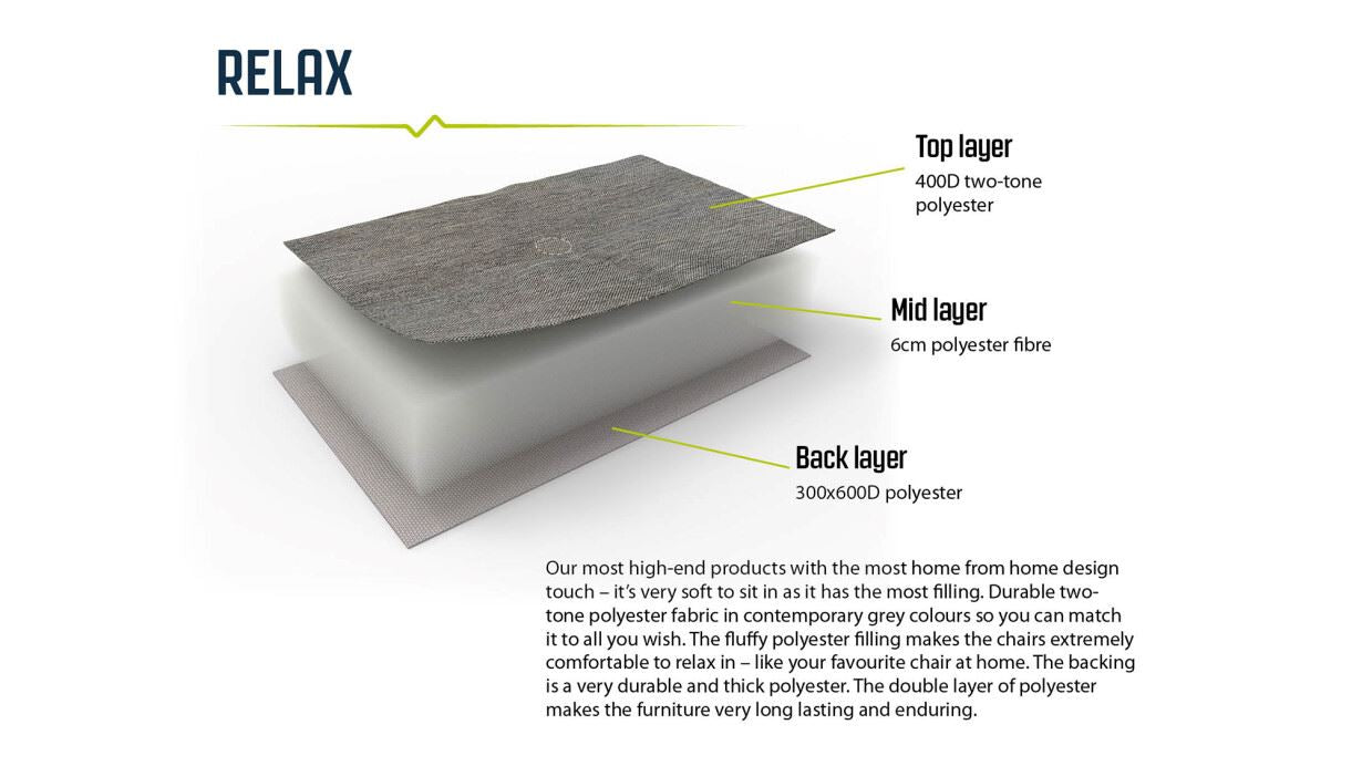 - Товсте наповнення на сидінні, спинці та підніжці для теплоізоляції та м’якості