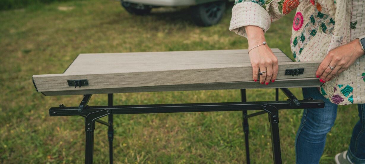 - Алюмінієва стільниця та рама поєднують високу міцність і мінімальну вагу