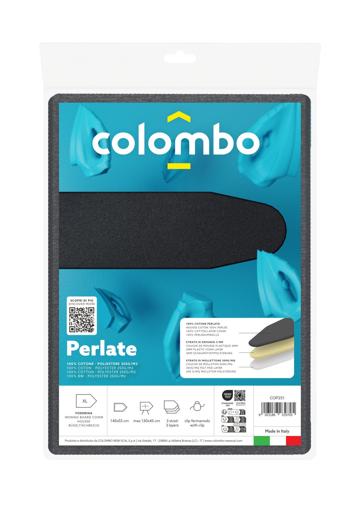 Оновіть свою прасувальну дошку стильним та функціональним чохлом Colombo Pearlised Black 130 x 50 см (COP250), який спеціально розроблений для максимально комфортного прасування. Чохол виготовлений з бавовни з додаванням поліестру, що поєднують термостійкість, зносостійкість та привабливий зовнішній вигляд. Підкладка фетр 300г/м2. Цей чохол — ідеальне доповнення до вашої прасувальної дошки, який забезпечить бездоганний вигляд одягу та зручність у щоденному використанні.