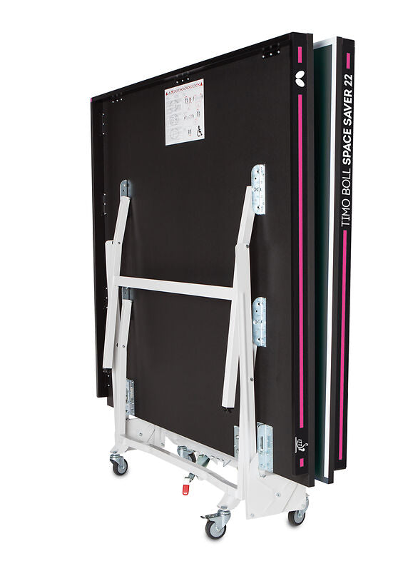 - Легке транспортування Транспортуйте тенісний стіл Butterfly Timo Boll Space Saver за допомогою 4-х коліщаток фірми STELLCO GmbH з фіксаторами. Колеса з гумовим покриттям забезпечують стабільність і покращують мобільність, дозволяючи швидко позиціювати стіл.