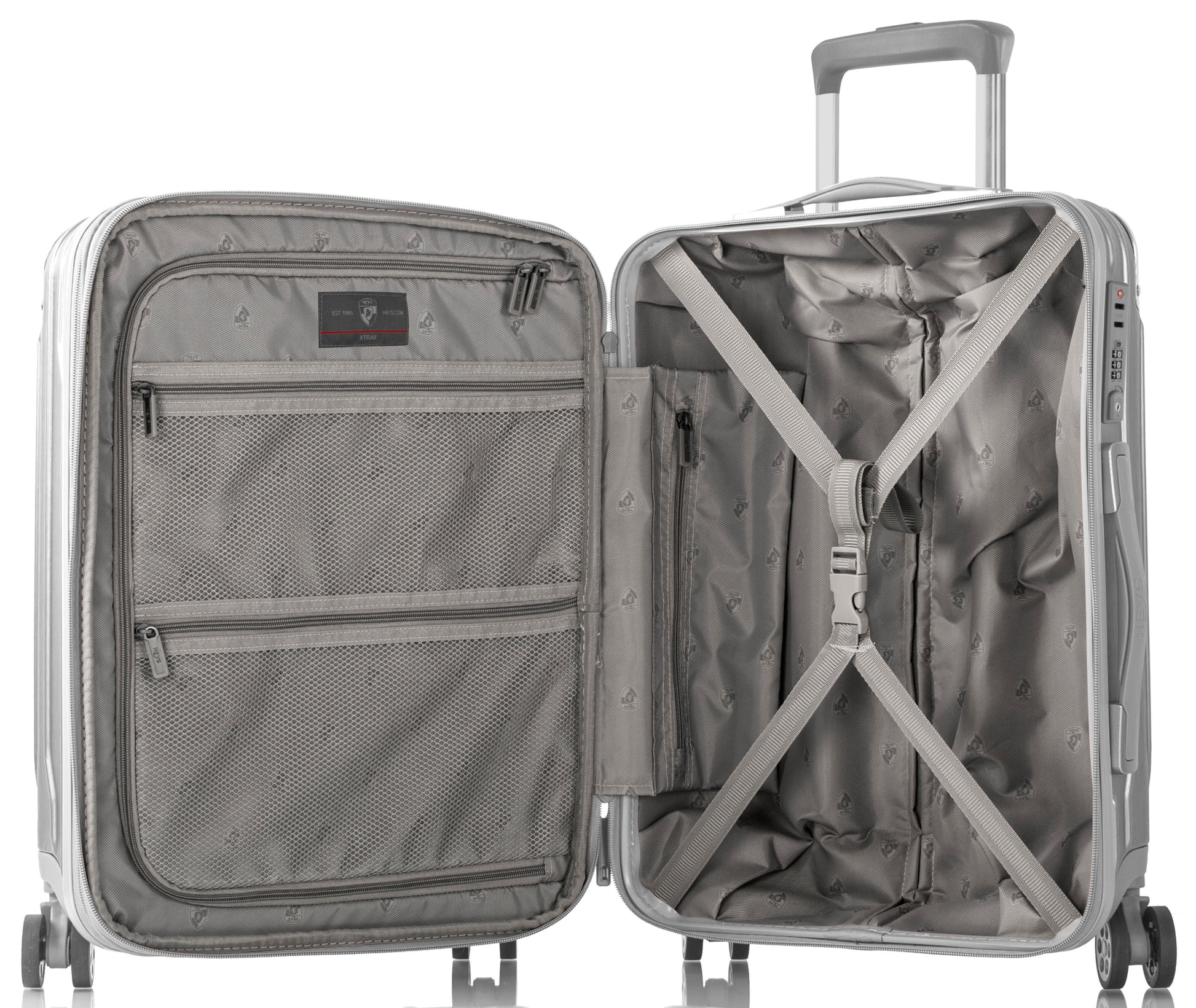 Основне відділення має розділювач на блискавці з двома сітчастими кишенями та два еластичні ремені для фіксації речей, що закріплюються застібкою. Валіза обладнана фірмовим кодовим замком з функцією митного огляду TSA та чотирма спареними повно поворотними колесами з можливістю незалежного розвороту кожного колеса на 360°. Системою передбачено рівномірний перерозподіл навантаження на кожне колесо, що своєю чергою сприяє плавному коченню та маневровості валізи. Є можливість збільшити корисний об єм валізи до 20% завдяки наявності розширювального клапана.