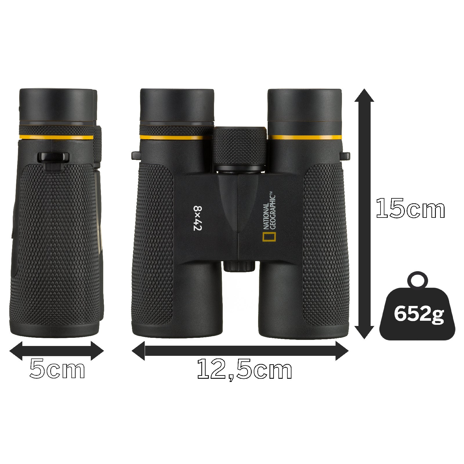 Комплект поставки: Бінокль, Захисні кришки окулярів та об'єктива, Нашийний ремінь, Кейс для транспортування, Серветка