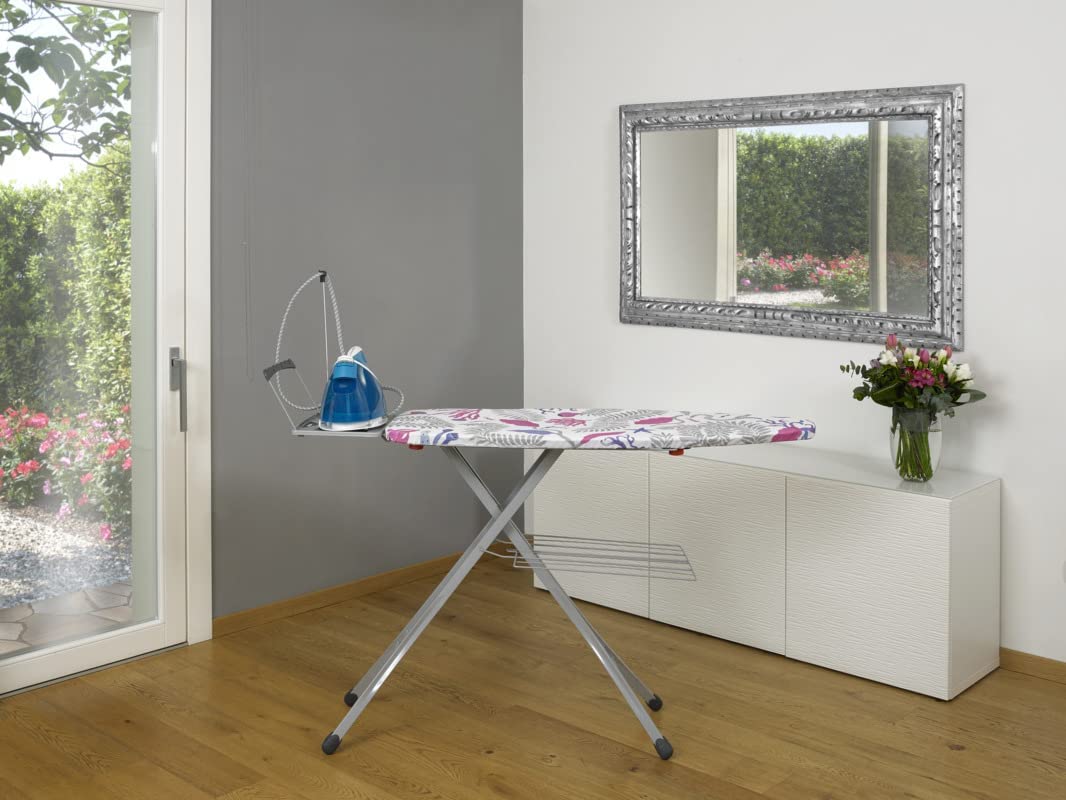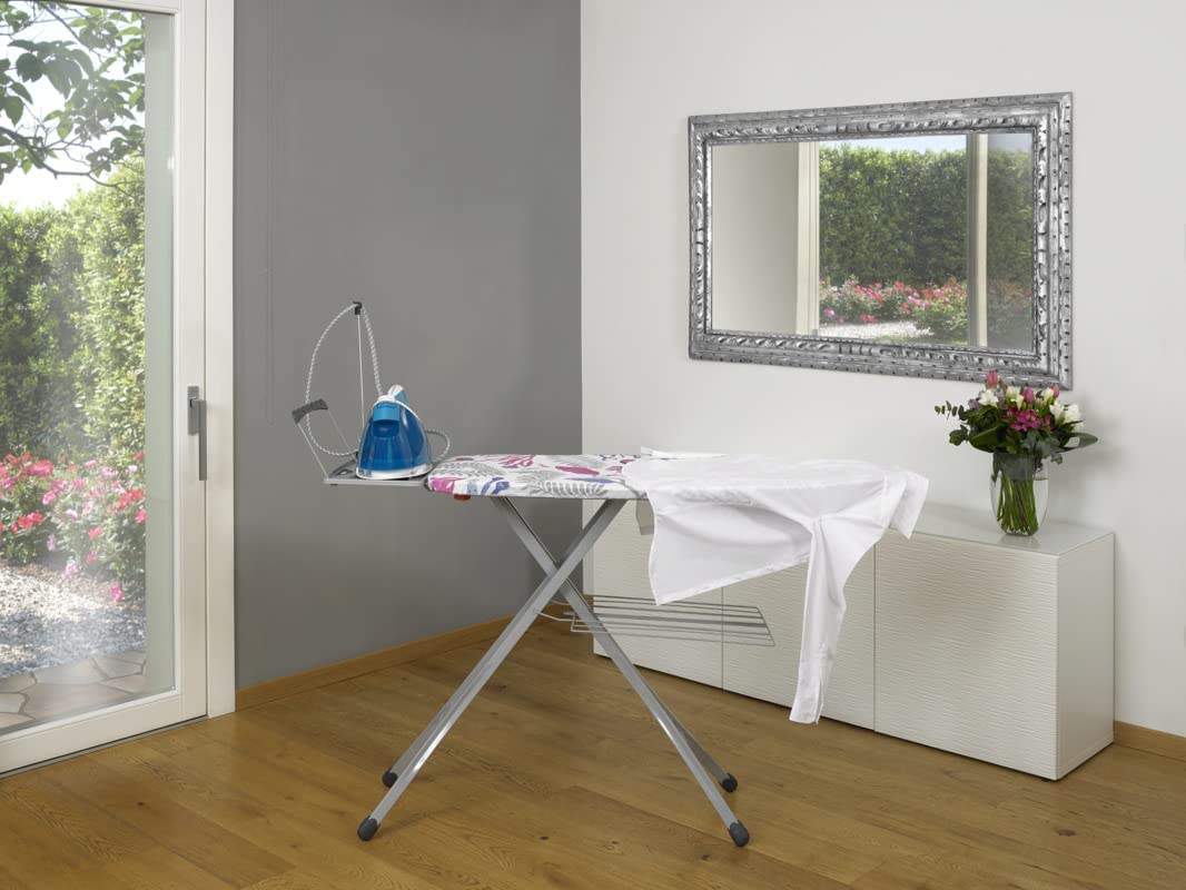Прасувальна поверхня дошки має наскрізну перфорацію на кшталт сітки. Завдяки такій конструкції, пара з-під праски проходить крізь саму дошку, тим самим запобігає накопиченню конденсату під чохлом. Чохол виконаний зі 100% натуральної бавовни з мольтоновою підкладкою. Закруглене закінчення дошки дозволяє вигладити важкодоступні місця в сорочках або блузах. Чохол знімний, у міру використання його завжди можна випрати або замінити на новий. Прасувальна дошка, плавно і без особливих зусиль регулюється по висоті для максимально комфортного використання. На ніжки одягнені ковпачки, що оберігають дошку від ковзання.