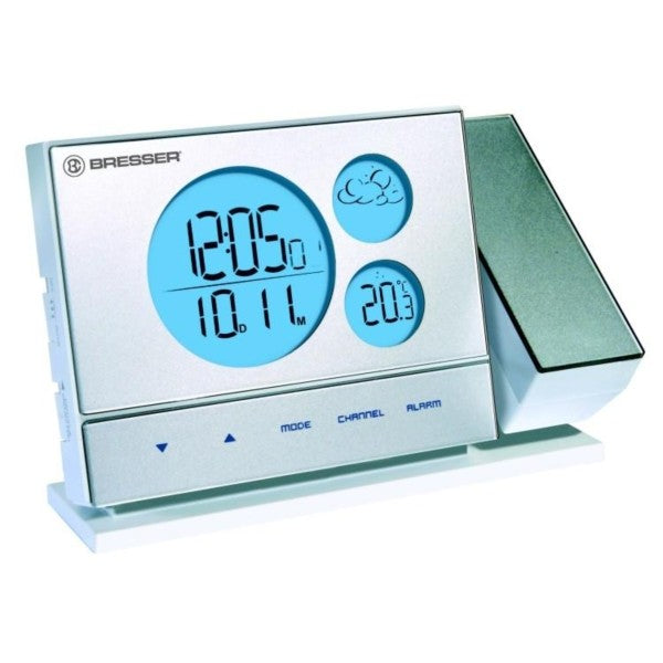 Bresser BF-PRO white проекционные часы с оригинальным дизайном и функцией проекции времени и температуры. На дисплеях станции отображается информация о температуре внутри и снаружи помещения, а также прогноз погоды.