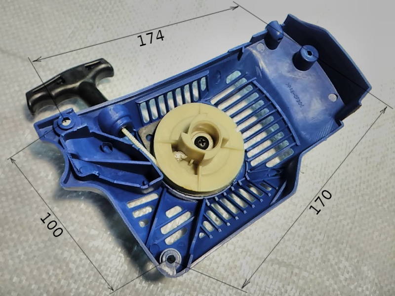 Стартер бензопилы Gardena, Grunhelm, Goodluck 3800 с жестким пуском, расстояния между крепежными отверстиями ~170, ~174, ~100 мм