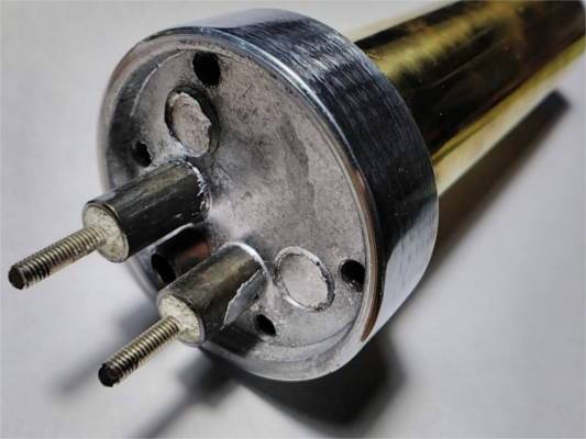 Круглый нагревательный тэн паяльника пластиковых полипропиленовых труб Aston Waterway MQ-R010, APC-WM 11, Уралмаш ППТ-2100, диаметр рабочей части 32 мм, общая длина без контактов - 128 мм