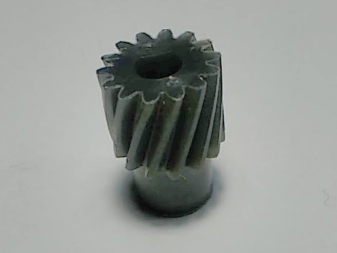 Пластиковая шестерня высотой 24, диаметрами 12 и 17 мм, на 14 косых зубов, в редукторе электромясорубки Ротор ЭМШ36/130-4 (Черкассы СССР)