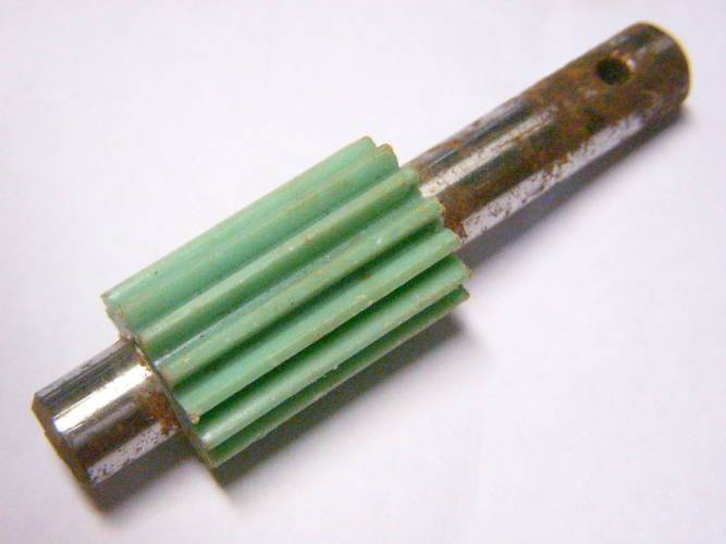 Оригинальная Советская пальчиковая шестерня (с пластиковыми зубами) мясорубки Ротор (Черкассы) длиной 67 мм, диаметр штока 9 мм, 15 пластиковых зубов