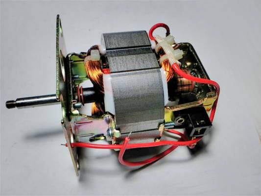 Электродвигатель 7025-M5 общей длиной 123 мм, вал выступает от фланца на 33 мм, с резьбой, для соковыжималки Vitek Vt-3653, миксера, блендера
