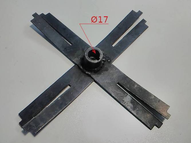 Рабочий измельчающий молоток нож для вертикального блендера кормоизмельчителя, длина лопастей 265 мм. Внутренний посадочный (на вал) диаметр 17 мм, с упором против сквозного движения