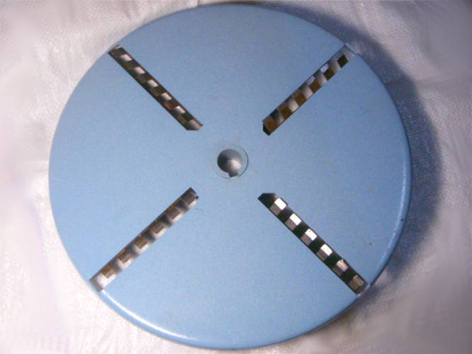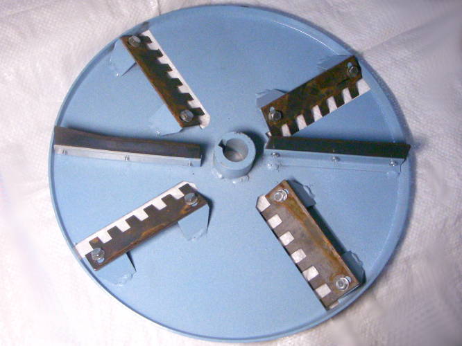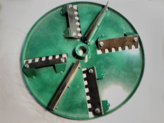 Дисковая насадка для корморезки Лан-5, диаметром 355 мм, посадочное отверстие на 24 мм, на 4 ножа, с резиновыми лопатками для выбрасывания продуктов обработки