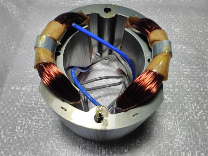 Статор на болгарку Makita 9069, Зенит ЗУШ-230/2400 Профи, дисковую электропилу Тайга, Ворскла, электрокосу Stern, Уралмаш РГ-1400 внутренним диаметром 53, под якорь 52, боковые размеры 74*90, внешний диаметр 90, длина каркаса 55 мм