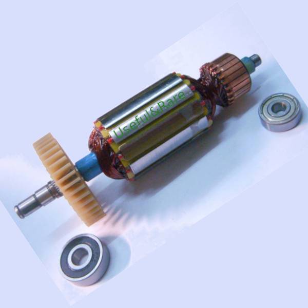 Якорь 125-й болгарки Stern, Ferm, Зенит, Темп под шпонку со стопорным кольцом. Основні розміри: довжина- 154 мм, размер обмотки- 39*56 мм, діаметр колектора - 25 мм, діаметр переднього підшипника - 9 мм, діаметр заднього підшипника - 7 мм, відстань між підшипниками -128 мм.