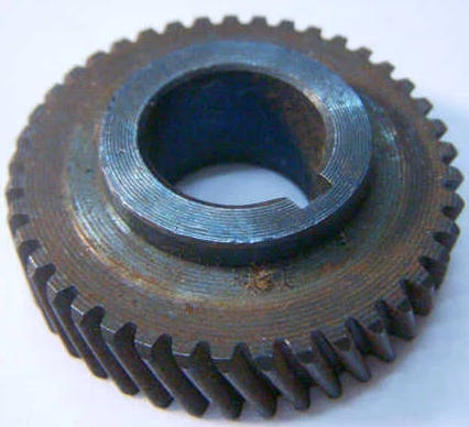 Стальная шестерня дисковой электропилы Kraissmann, Ворскла ПМЗ 90-210 на 41 косых зубов, диаметр 45 мм, посадка на 16 мм, высота 11 и 15 мм с выступом