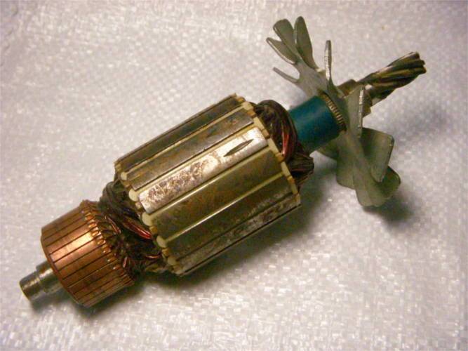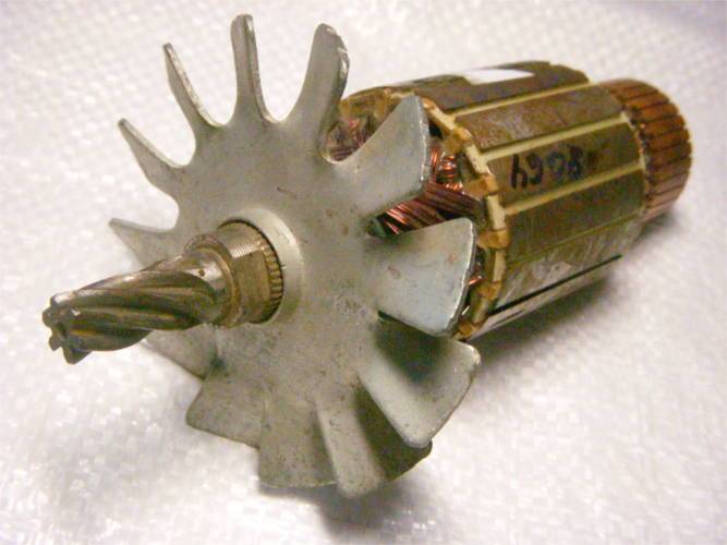 Якорь торцовочной дисковой электропилы Powertec, Vorskla, Sturm MS5530 диаметром 54 мм, длина пакета 52 мм, между подшипниками 150 мм, общая длина 186 мм, 6 косых зубов