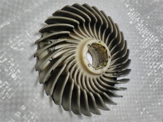 Крыльчатка диаметрами 19(внутри)*88(снаружи) мм охлаждения двигателя фрезерного станка, рейсмуса Энергомаш РС-14330, BauMaster ТН14330/14305. Чтобы еще совпадали внутренние выступы направляющие - это роскошь, главное чтобы плотно одевалось на вал, грейте феном, одевайте на клей