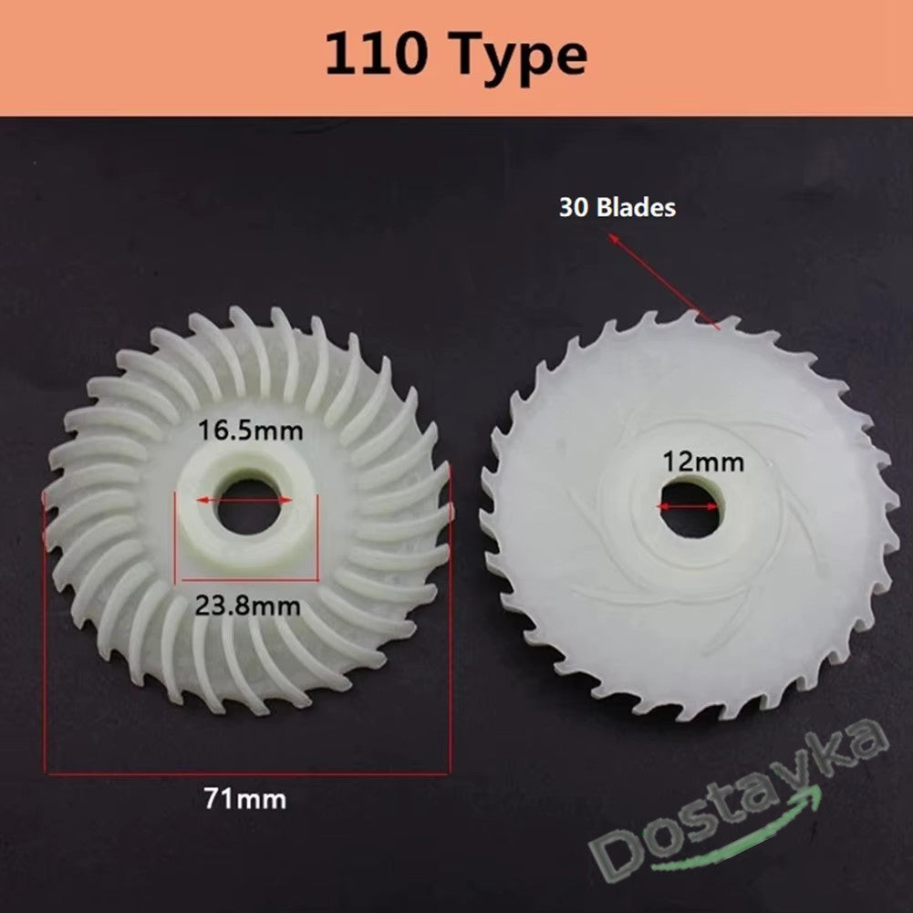 Крыльчатка охлаждения 70*12, посадка на гладкую втулку вала якоря обдува двигателя болгарки