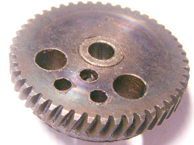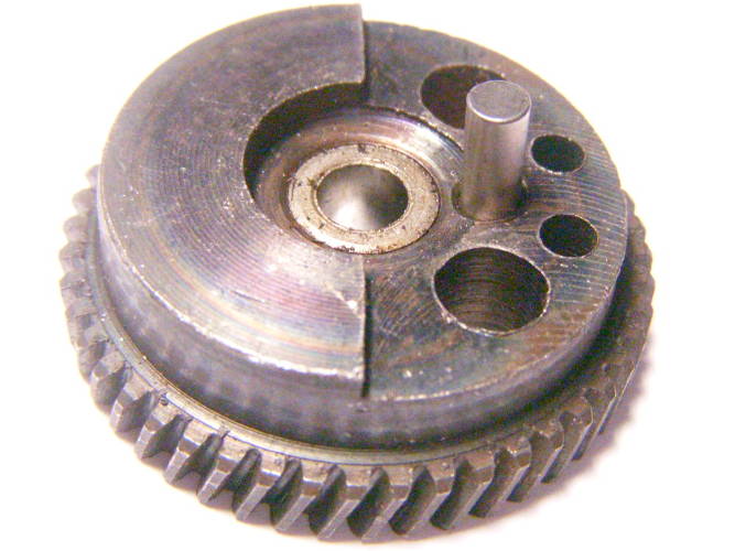 Шестерня электролобзика Einhell Bavaria BJS 400 (4321180), наружным диаметром 41 мм, посадка на отверстие 6 мм, два отверстия 7 мм, высота 13 мм, 48 зубов. Штифт диаметром 4 мм