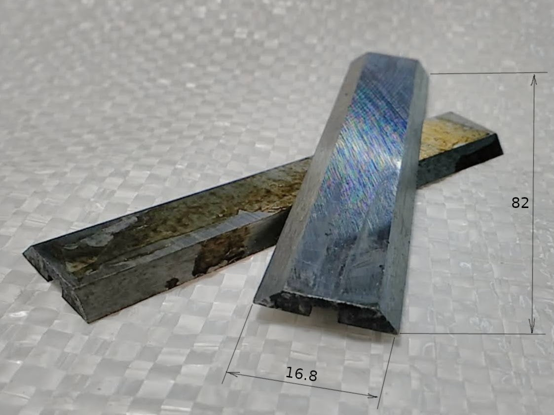 Двусторонние ножи рубанка Фиолент ИЭ-5714, Интерскол, Иж, Ижевск, Байкал Е-313 шириной строгания (длина ножа) 82 мм, ширина ножа 16 мм, толщина 3 мм, продольный посадочный паз