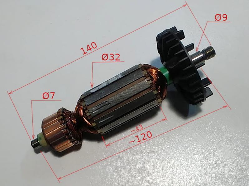 Якорь 32*140 резьба 8 электрорубанка Фиолент р2-82 600Вт