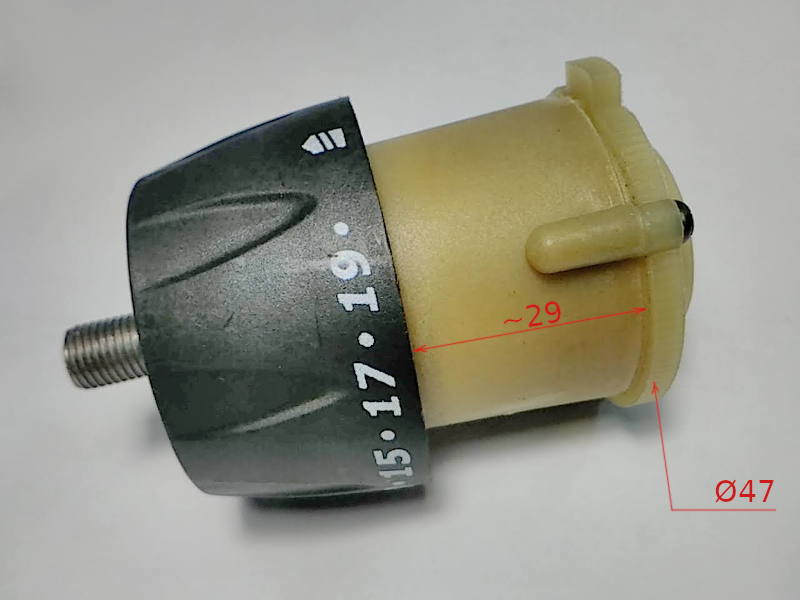 Длинный редуктор сетевого шуруповерта Диолд, Старт, PRO-CRAFT PB-1200, Элпром ЭШС-860, диаметр по юбке 47 мм, между юбкой и поворотной крышкой 29~30 мм
