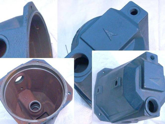 Длинный чугунный корпус насосной камеры насоса (обычно 1.1кВт) гидрофора FARMER JET 100 L, Maxima JY-100A, Taifu, Euroaqua, Forwater JET100L, Pump JET100a, Насосы+ AUJET 80/110 B/E1(A), SPRUT AUJSP 505A (маленького), расстояние между крепежными отверстиями по диагонали ~190 мм, общая длина ~190 мм, посадочный внутренний диаметр 164 мм. Для сверки смотрите чертежи на фотографиях
