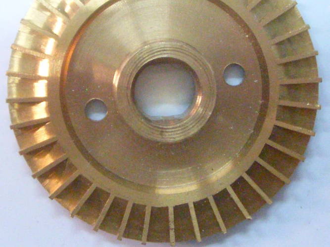 Латунная крыльчатка выхревого насоса Sprut AUPS COMPACT (A05/021), Euromatic, Pedrollo PKm 60, размером ∅60 мм, посадочное отверстие ∅12 мм на два боковых спила, высота рёбер 6 мм