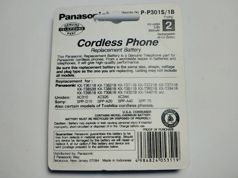 Panasonic KX-T3611B, -T3621B, -T3711B, -T3721B, -T3731B, -T3853B, -T3861B, -T3911B, -T3921B, -T3941B, -T3951B, -T3961B, -T4301B, -T4401B, Uniden XC310, XC326, XC346, Sony SPP-D15, SPP-A20, SPP-A40, SPP-75, Toshiba